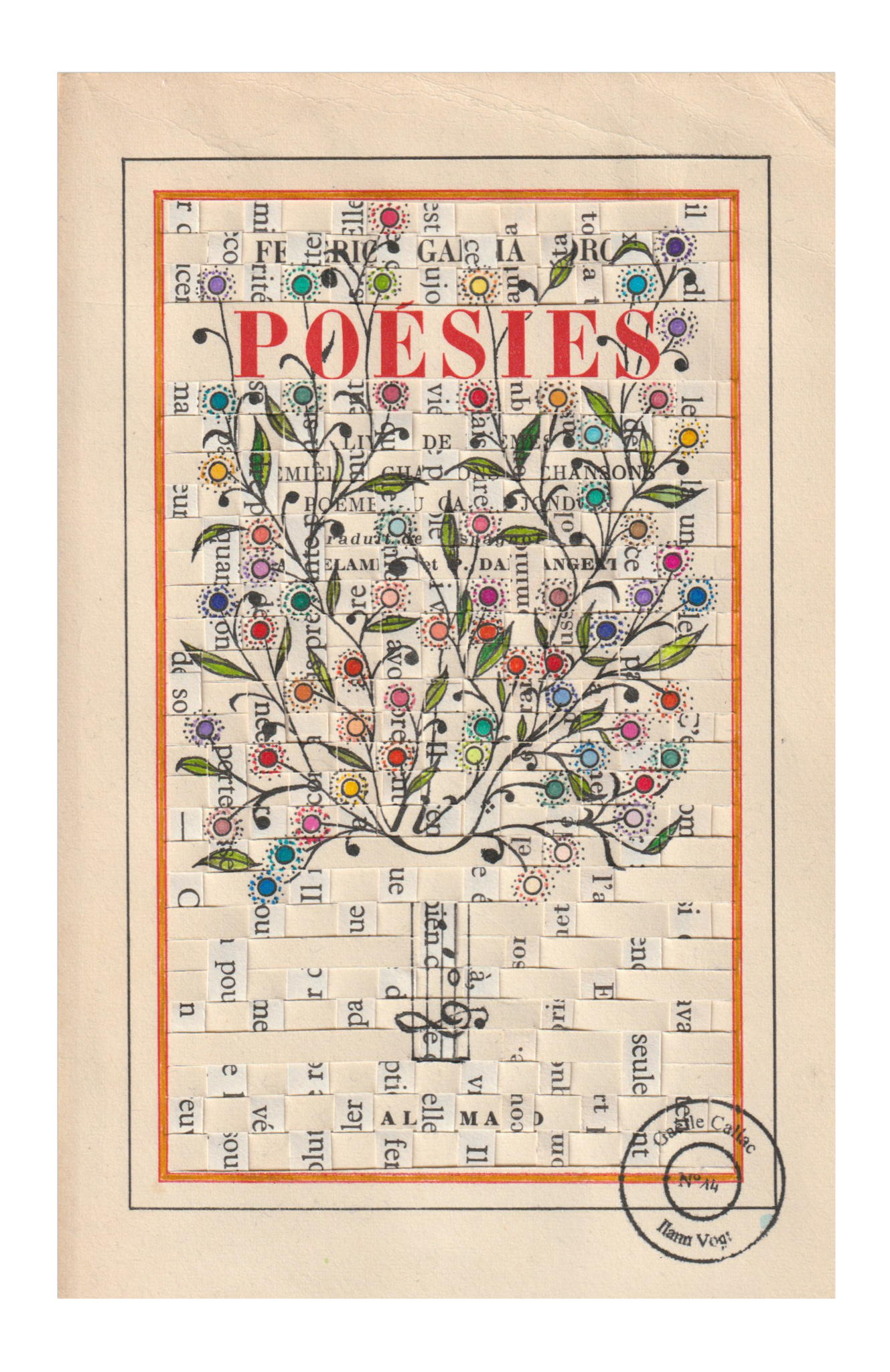 « Les mots » de J.-P. Sartre est la première couverture de livre tissée par Ilann Vogt. Ainsi, ai-je intitulé cette série Les mots pour essence. Portée par la musicalité des mots, le touché d’un papier, un carré plus inspirant qu’un autre, j’interviens intuitivement sur la page.