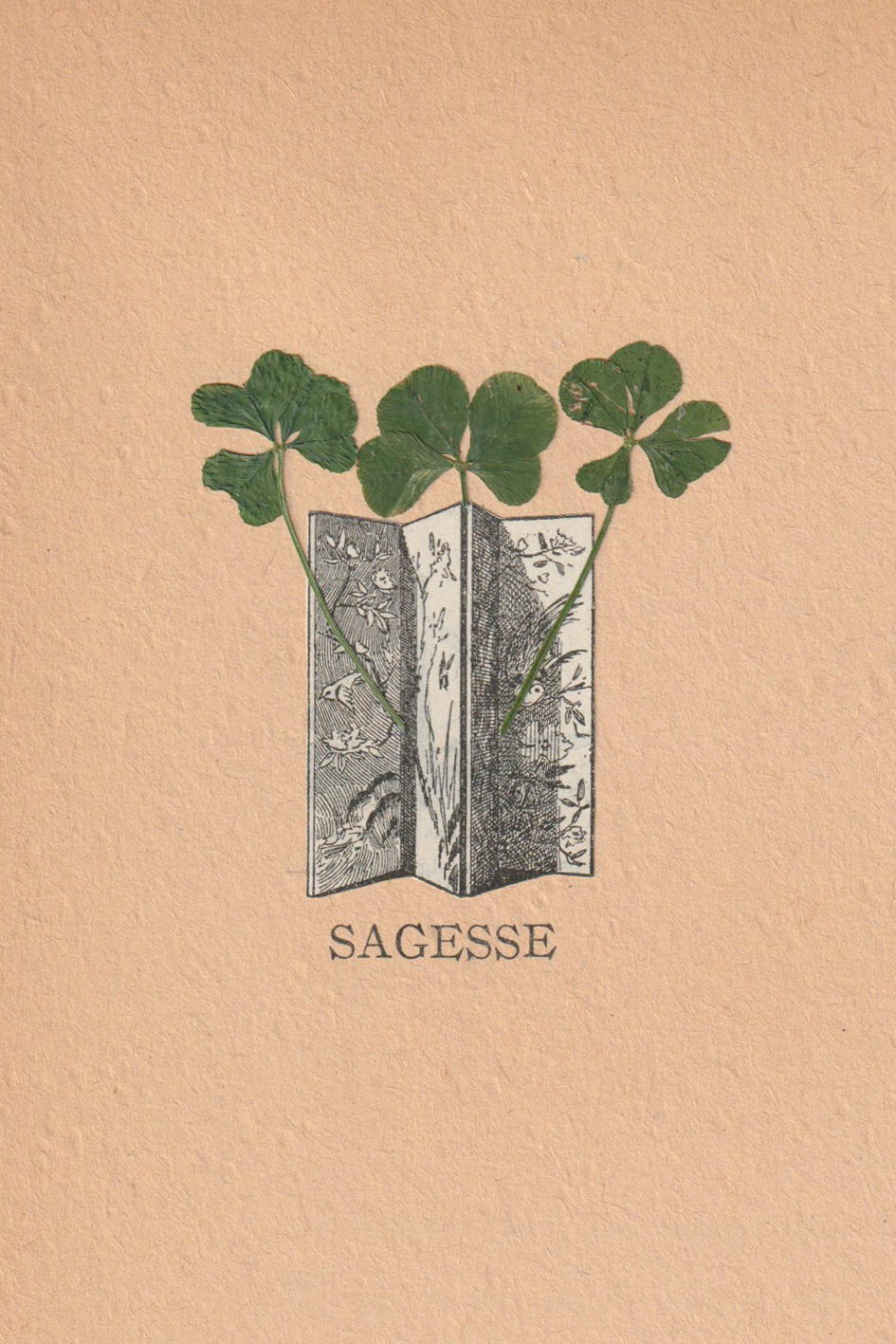 Chercher des trèfles à quatre feuilles est une occupation que j’affectionne depuis toujours. Lorsque j’en trouve, je les glisse entre les pages de livres, à l’instar de mes gravures et dessins. De cette habitude est née l’idée de les mettre en scène dans des compositions aussi simples qu’ils sont fragiles.